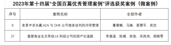 2023年9月8日,在全国工商管理专业学位研究生教育指导委员会的指导下,中国管理案例共享中心主办的第十四届“全国百篇优秀管理案例”评选工作结束。本届评选共收到来自全国170所院校的1283篇投稿,经过同行匿名函审和专家委员会会议评审两轮评审,经管学院共有7篇案例入选“全国百篇优秀管理案例”,其中5篇为一般案例,2篇为微案例。