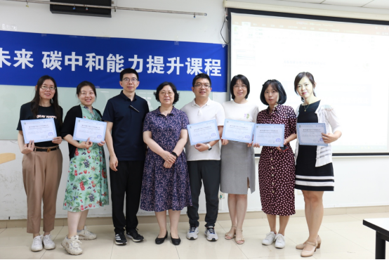 结业当天,同学们分组分享了各行业在碳中和形式下面临的机遇与挑战,多名老师现场点评指导,范英教授进行课程总结并为同学们颁发了《碳中和能力提升计划结课证书》。