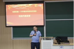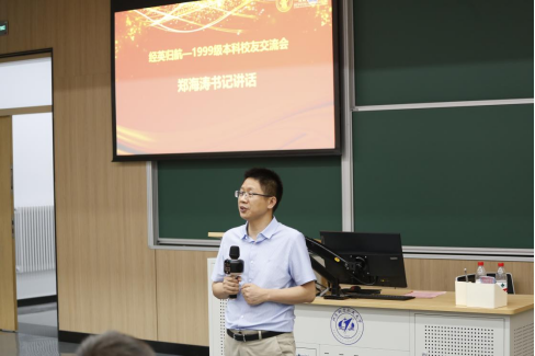 郑海涛书记做总结发言。他首先对校友们回家表示热烈的欢迎,希望校友们经常带着家人回母校转转。他向校友们介绍了二十年来学院的发展和学科建设情况,并表示希望校友们持续关心和支持母院的建设发展,学院也将持续为校友们搭建交流沟通的平台,服务校友,共同发展。
