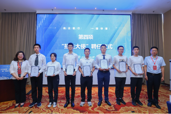 随后,进行“启航导师”和“招生大使”聘任仪式。为了更好地开展大中衔接,探索高校与中学联合的有效模式,建立常态化高质量的交流机制,发现具有创新潜质的优秀中学生,培养国家需要的高水平科研后备力量,我校黑龙江招生组面向全校黑龙江籍的师生,选拔涵盖航空航天、信息、理科、文科、医工等学科群的17名“启航导师”和25个学院书院的54名“招生大使”,助力北航与黑龙江省各中学的精准对接。副校长黄海军为马树微等“启航导师”代表颁发聘书,招生办公室主任邓怡和经济管理学院党委书记郑海涛为张珈赫等同学代表颁发“招生大使”聘书。