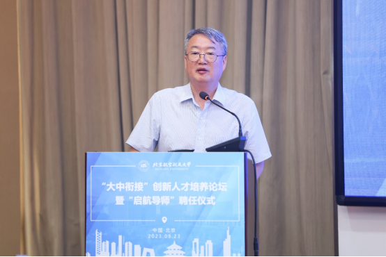 为了更好地强化大中联动,研讨人才选拔和培养模式的突破与创新,2023年9月23日,我校在唯实国际文化交流中心召开“大中衔接”创新人才培养论坛暨黑龙江省“启航导师”聘任仪式。黑龙江教育考试院普招处副处长尹兆明,黑龙江省伊春市第一中学校长付国军、哈尔滨市双城区兆麟中学校长吴险峰等黑龙江高中代表,我校副校长黄海军、教务部副部长兼招生工作办公室主任邓怡、经济管理学院党委书记黑龙江省招生组组长郑海涛、北航实验学校党委书记马树微,及启航导师、招生大使代表出席论坛。论坛由经济管理学院党委副书记高超主持。