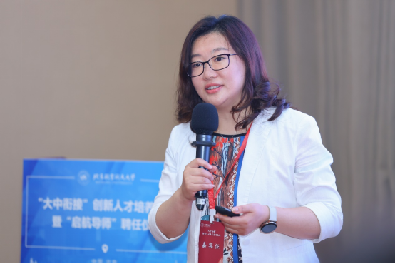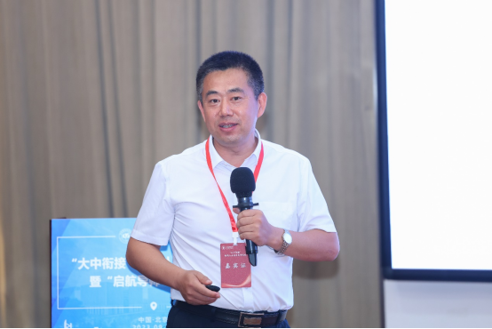 在论坛的主题报告环节,首先北航教务部副部长兼招生工作办公室主任邓怡向会议做了主旨报告。邓怡向参会嘉宾细致介绍了北航的人才培养始终服务国家的重大战略需求,不仅体现在北航的历史底蕴和精神担当,还体现在北航人才培养的改革、科技创新和科教融汇的实践探索中。邓怡认为要在高校和高中之间打造双向延伸,探索协同培养的育人模式。
