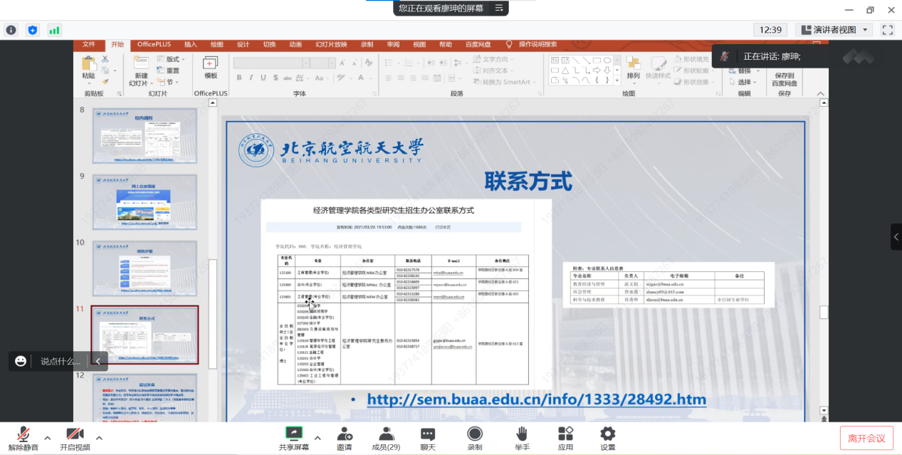 经验分享会共邀请了李璇、郭子璇、杜景龙、徐小移、李鼎、郑旭、荣婉、曹世纪、廖珅、郭夏岩、王浩东等十余位经济管理学院往届学长学姐。经验分享会分为经验分享和答疑解惑两个部分。