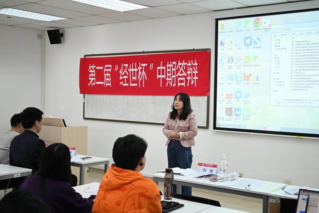 本次答辩会分为学生答辩展示、评委提问和教师指导建议三个部分。同学们就能源经济、绿色金融、企业发展等多个领域开展研究,并展示现阶段研究成果。