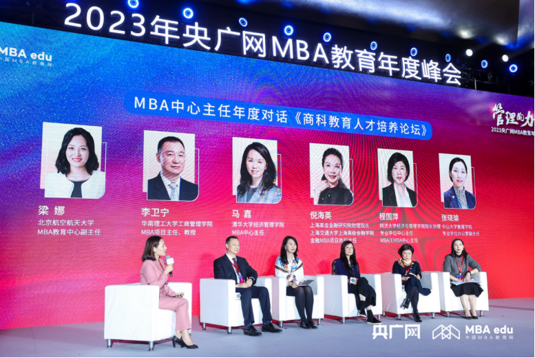 北京亚洲成人在线一二三四五六区MBA教育中心副主任梁娜受邀出席本次大会并主持MBA中心主任年度对话。与各位主任围绕“构建高质量人才培养教育体系”、“MBA教育特色化发展”等问题展开深度探讨