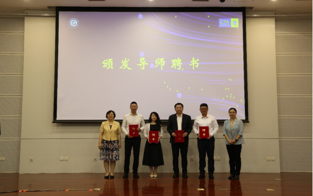 范英院长与牟晖副院长共同为2024年四位新聘校外导师颁发了聘书,他们是用友网络科技股份有限公司副总裁董波、中海油华北销售有限公司财务总监李风平、常见投资管理(北京)有限公司副总经廉涛以及北京财帮科技管理有限公司创始人兼CEO王峰。