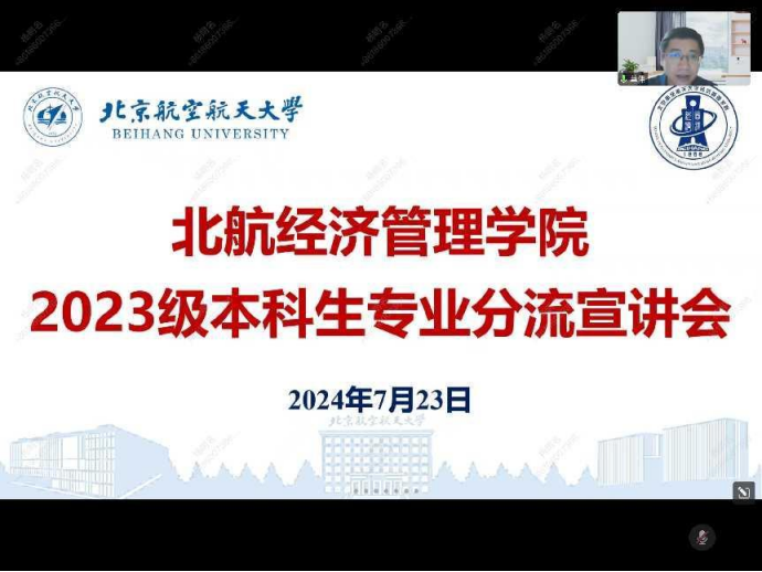 7月23日,经济管理学院召开2023级本科生专业分流宣讲会,院长范英、党委副书记高超、各专业系主任、本科教学秘书、辅导员和全体2023级本科生参加宣讲会,宣讲会由副院长单伟主持。