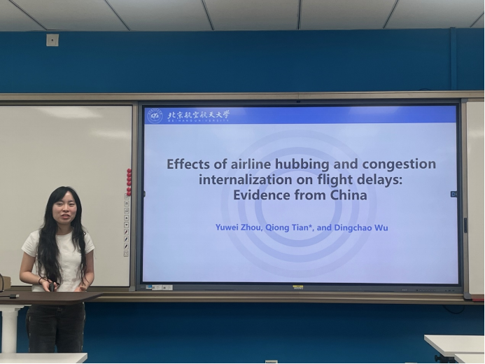 合肥工业大学汽车与交通工程学院廖维君助理教授从减污降碳协同发展,中国石油大学(北京)经济管理学院吉庆助理教授从航空高铁结构模型估计和环境影响评估,北航经管学院博士研究生周雨薇从航空公司拥挤内部化展开报告和讨论,会议全程讨论热烈。