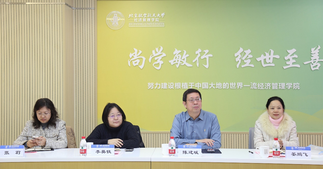会上,郑海涛书记对陈建斌院长一行的到访表示热烈欢迎,并简要介绍了北航经济管理学院的历史沿革、学科建设、师资力量、科研成就及国际交流等方面的情况。陈建斌院长高度评价了北航经管学院在学科交叉融合方面的示范作用,并介绍了北京联合大学管理学院的基本情况。