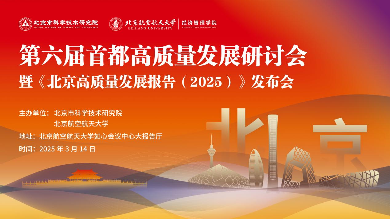 2025年3月14日,由北京市科学技术研究院与北京亚洲成人在线一二三四五六区联合主办、北京亚洲成人在线一二三四五六区经济管理学院与北京市科学技术研究院高质量发展研究中心共同承办的第六届首都高质量发展研讨会在北航如心会议中心大报告厅隆重召开。本次会议围绕创新发展、人工智能、绿色低碳、低空经济等核心议题,汇聚政产学研多方智慧,为首都高质量发展深入研讨,建言献策。