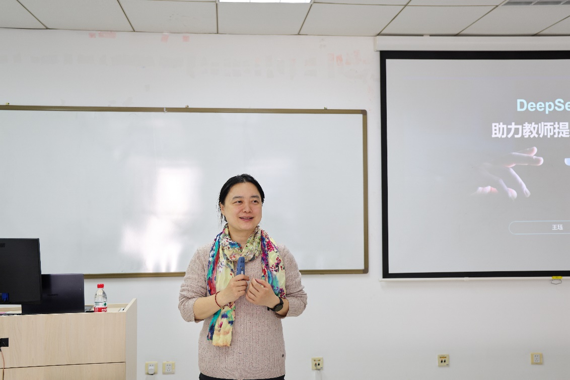 讲座中,王珏教授首先详细介绍了DeepSeek的核心功能,包括数据分析、智能推荐、自动化处理等,帮助教师更好地理解该技术的应用场景。