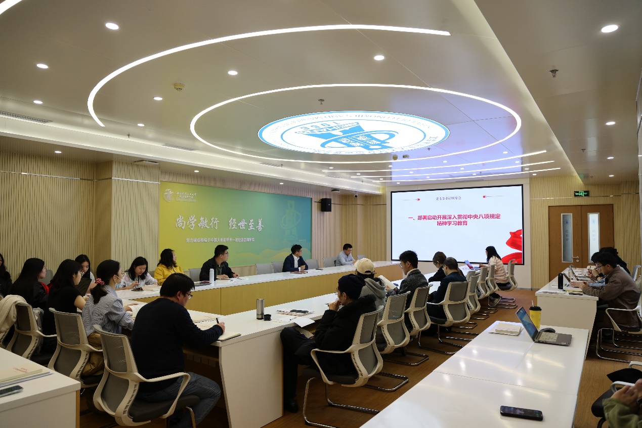 2025年3月26日下午,经济管理学院党委在新主楼A622教室召开支部书记联席会,部署动员开展深入贯彻中央八项规定精神学习教育工作。学院党委书记郑海涛主持会议,师生支部书记、学生工作负责人和专职组织员40余人参加会议。