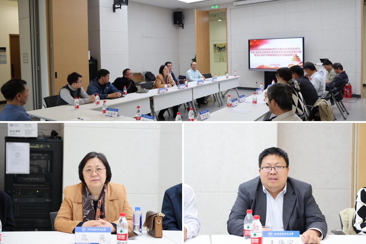 为深入贯彻落实党的二十大关于科技创新体系建设的战略部署,深化基层党建与学科发展融合机制,2025年4月9日下午2点30分,北航经济管理学院管理科学与工程系教师党支部与宇航学院航天智能科学与技术系教师党支部在沙河校区主楼D409举办党支部互联共建暨顶尖学科与国家级实验平台建设研讨会。经济管理学院院长范英,宇航学院书记徐亚军、院长王伟宗,管理科学与工程系教师党支部书记罗开平、航天智能科学与技术系教师党支部书记王可东等共20人参加。