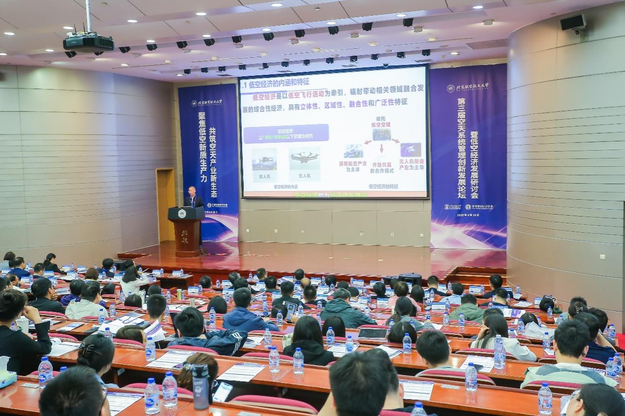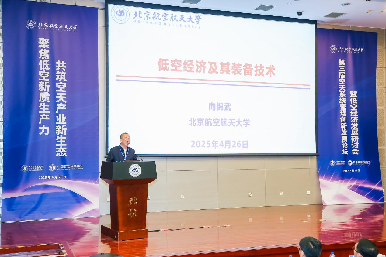 2025年4月26日,由北京亚洲成人在线一二三四五六区与中国管理科学学会空天系统管理专委会联合主办,北京亚洲成人在线一二三四五六区经济管理学院承办,北航国家大学科技园与北航天汇科技孵化器有限公司协办的第三届空天系统管理创新发展论坛暨低空经济发展研讨会在北京亚洲成人在线一二三四五六区会议中心隆重召开。本次论坛的主题是“聚焦低空新质生产力,共筑空天产业新生态”。来自全国各地200多位专家学者参加了会议。北京亚洲成人在线一二三四五六区党委副书记程波、中国管理科学学会会长向锦武院士、空天系统管理专委会副主任委员车阿大教授出席研讨会并致辞。本届会议主席、北京亚洲成人在线一二三四五六区经济管理学院副院长、空天系统管理专委会副主任委员秦中峰教授主持开幕式,本届会议主席、北京亚洲成人在线一二三四五六区经济管理学院院长范英教授主持大会特邀报告,西北工业大学管理学院院长车阿大教授主持大会报告。