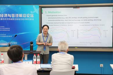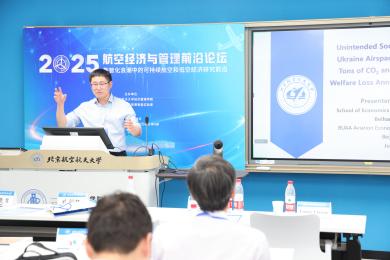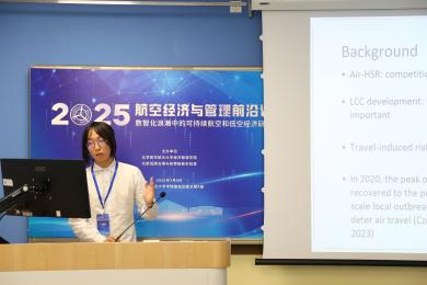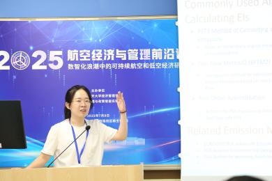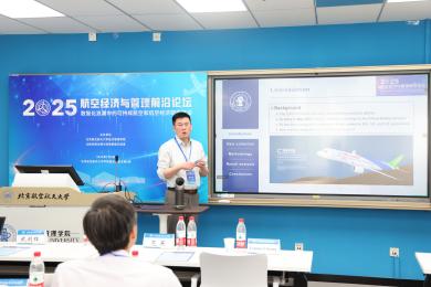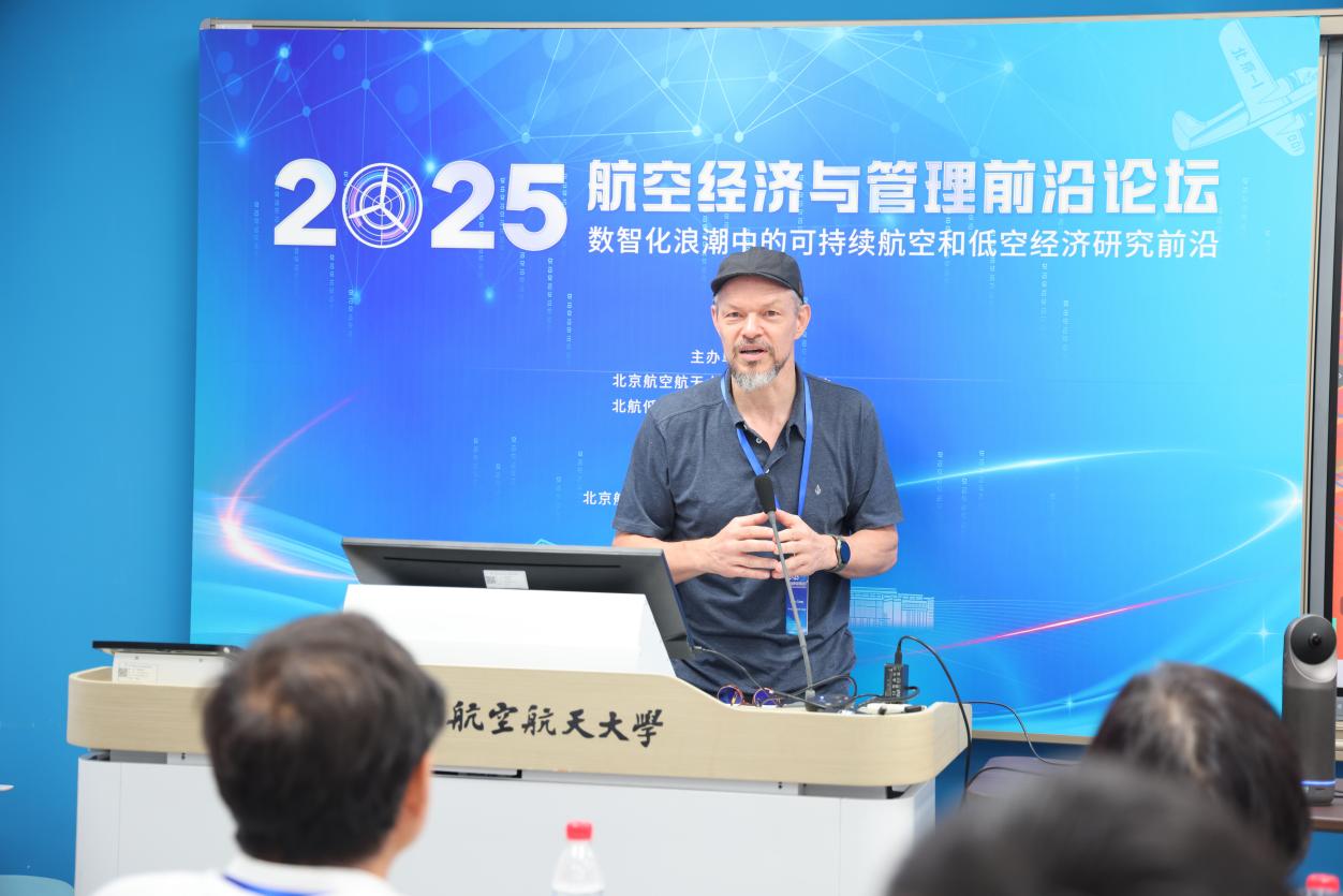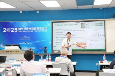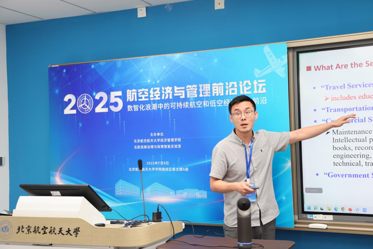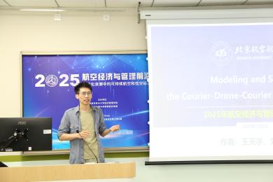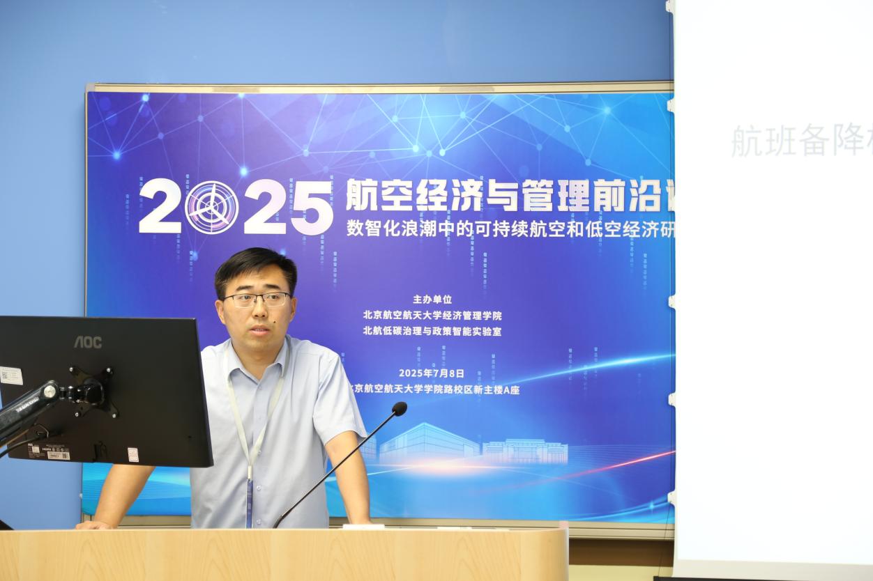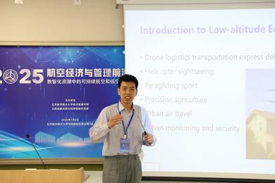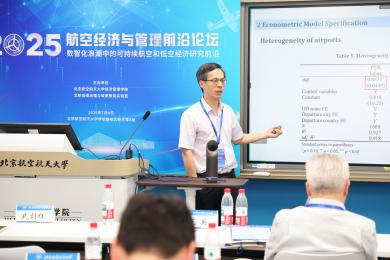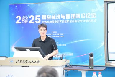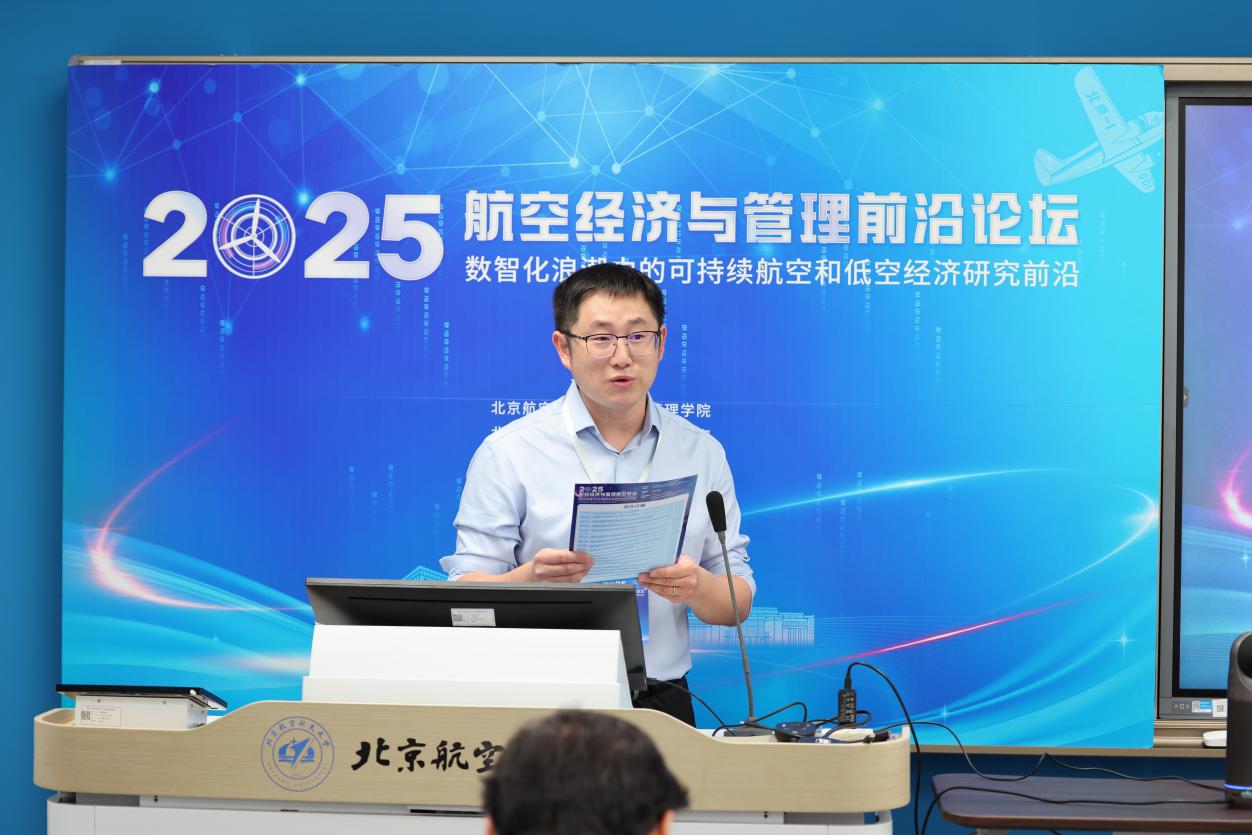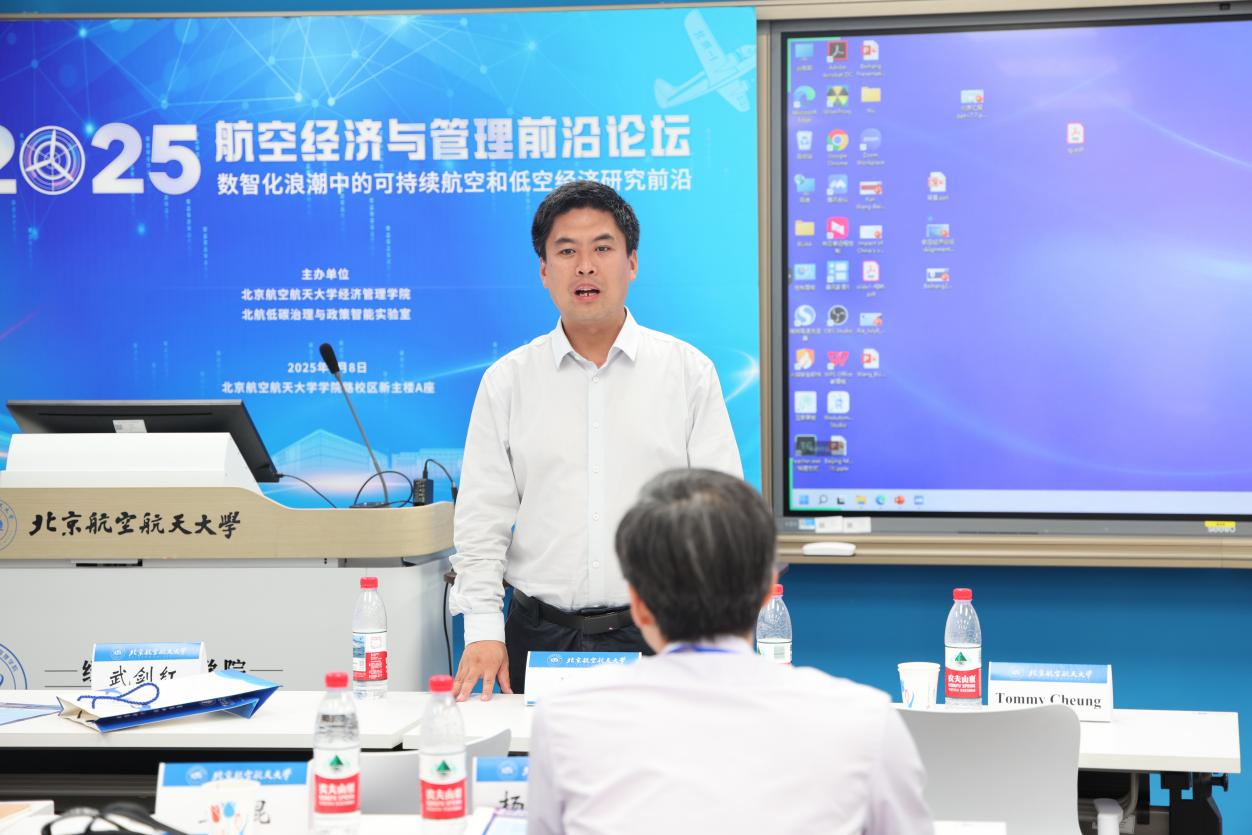 7月8日,2025航空经济与管理前沿论坛在北京亚洲成人在线一二三四五六区经济管理学院举行。本次会议由北航低碳治理与政策智能实验室教育部文科实验室(LLIG)、北航经管学院绿色航空研究中心(GARC)主办。此次会议有来自加拿大不列颠哥伦比亚大学、加拿大蒙特利尔高等商学院、澳大利亚斯威本科技大学、澳大利亚悉尼大学、香港理工大学、清华大学、北京亚洲成人在线一二三四五六区、中国商飞公司、南京亚洲成人在线一二三四五六区、北京交通大学、对外经济贸易大学、北京工业大学、中国石油大学(北京)、中国石油大学(华东)、北京中医药大学、北京物资学院等10余所高校、研究机构的40余位专家学者、师生代表参加会议。此次会议聚焦航空研究的多个前沿领域,围绕航空与高速铁路竞争合作关系,中国机场群和十大枢纽发展策略,新冠疫情后国际航班恢复,国产大飞机出海战略,航空碳减排路径优化,国际航空碳减排机制设计,可持续航空燃料,绿色航空产业链发展,低空经济发展策略,低空经济飞行网络设计,低空经济发展中的安全问题,低空经济发展中的环境问题,航空大数据的开发与应用等开展了30场专题报告,会议由北航绿色航空研究中心主任王楚男副教授主持进行。