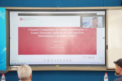 香港理工大学工学院王焜助理教授作关于航空链接如何影响双边服务贸易,该研究使用双重机器学习方法,提升估计效果。