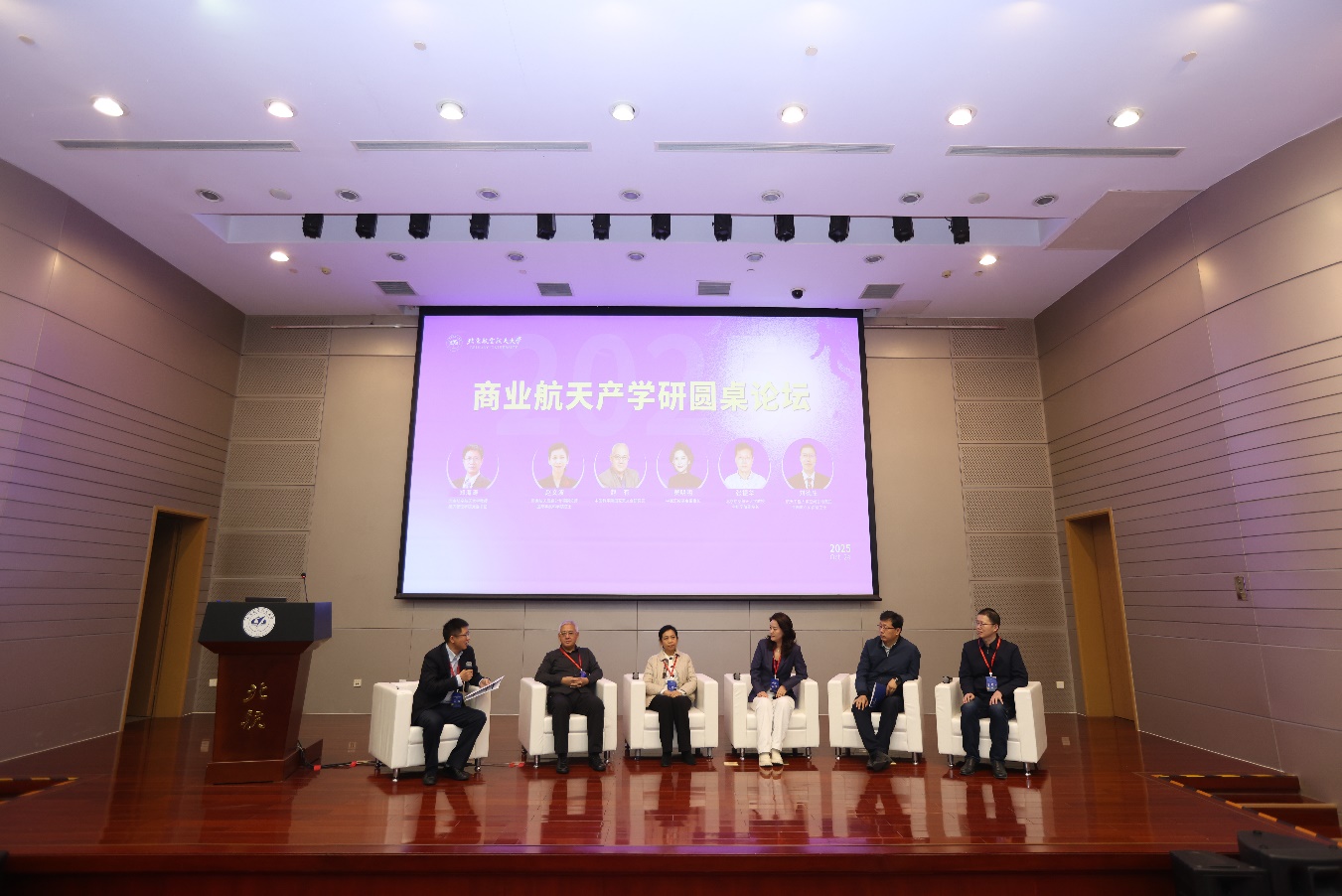 商业航天产学研圆桌论坛,由北航经济管理学院党委书记郑海涛教授主持,对话国家航天局高分专项副总师、国际宇航科学院赵文波院士,中国科学院国家天文台赵有研究员,中商汇投基金董事长窦明明,北航宇航学院副院长张振华教授,航天工程大学空间目标感知全国重点实验室办公室刘德生主任。论坛聚焦商业航天发展过程中产学研融合面临的机遇与挑战,通过观点分享、思想碰撞,为商业航天安全有序发展和产学研深度融合进行了深入的讨论。
