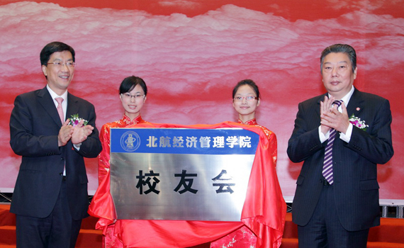 中国航空工业集团公司总经理、经济管理学院校友林左鸣先生,北航校长怀进鹏院士为经济管理学院校友会成立揭牌。