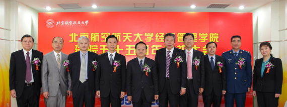 清华大学经济管理学院副院长陈国青教授代表兄弟院校致辞。他对北航经济管理学院五十五年辉煌历程和所取得的成就给予了高度评价,希望兄弟院校之间一如既往的相互学习,相互支持,密切合作,共同发展,并寄语北航经济管理学院以五十五周年院庆为契机,展开新的征程,攀登新的高峰,创造新的辉煌。校友代表、中国煤炭科工集团有限公司总会计师蒋占华先生回顾了他在北航的学习经历,表达了对母校和学院的感激和眷恋之情,对学院未来的发展充满信心,并号召所有校友在各个行业和岗位上,用实实在在的行动奉献国家、奉献社会,从而回报母校的栽培和教育,为母校的荣誉增光、添彩。教师代表、经济管理学院原常务副院长夏国平教授回顾了学院的奋斗历程。近十年来,经济管理学院写下了励精图治抓好师资队伍建设,着力提高科研水平和教育质量,加速MBA和EMBA的教育的历史;写下了人才培养和科学研究均获得了标志性成果的历史;写下了一举进入国家重点学科、从而奠定了在全国高校一流的地位的历史;写下了大踏步改善办学条件的历史;写下了开拓国际合作和培养留学生,为国家和国际上输送大批有真才实学的人才的历史。学生代表、380841班刘勍儿同学代表全体在校学生向学院献上真诚祝福。她表示在校生要发奋学习,不断积累知识和技能,发挥青年人敢于钻研的精神,早日成长为具有领军和领导潜质的高级人才,为国家建设、社会进步做出应有贡献。