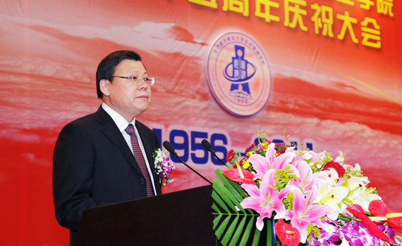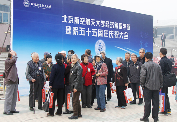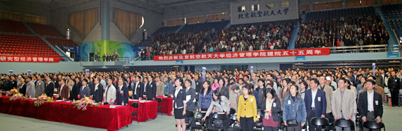 10月22日上午9时,经济管理学院建院五十五周年庆祝大会在我校体育馆隆重举行。经济管理学院校友代表及学院师生共计2000余人齐聚一堂,共贺学院五十五周年华诞。出席大会的领导和嘉宾有:全国政协经济委员会副主任、工业和信息化部原部长、经济管理学院兼职教授李毅中,中国航空工业集团公司党组书记、总经理、经济管理学院兼职教授林左鸣,兄弟院校代表、清华大学经济管理学院副院长陈国青,以及经济管理学院校友空军某研究所所长王军良、中国煤炭科工集团总会计师蒋占华、神华集团物资贸易公司总经理冯宁等。出席大会的学校领导有校党委书记胡凌云、校长怀进鹏、以及学校各职能部处负责人和兄弟院系领导。庆祝大会由经济管理学院党委书记刘志新主持。 在嘹亮的国歌声中庆祝大会拉开序幕。经济管理学院院长王惠文首先代表学院向莅临大会的领导、嘉宾和校友们致以热烈的欢迎,向长期以来关心和支持学院发展的学校领导、兄弟院系领导和广大校友致以诚挚的谢意。王惠文院长在回顾学院五十五年发展历程时指出,从1956年建立航空工程经济系,到文革时期的曲折发展,从1986年成立管理学院到1999年更名为经济管理学院,半个多世纪的风雨历程,北航经管人创造了一段艰苦创业、团结奉献、敢为人先的奋斗史。在展望学院的前景时,王惠文院长表示,学院将紧紧围绕学校“建设空天信融合特色的世界一流大学”的发展目标,结合自身的特点与优势,不断发展自我、不断突破自我,努力将学院建设成为世界一流的高水平研究型经济管理学院。