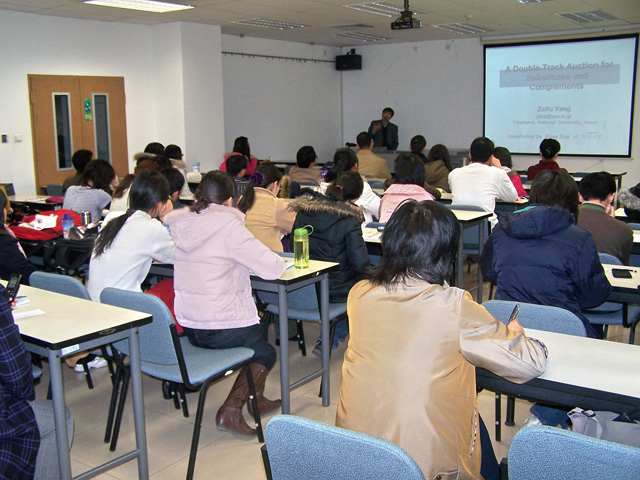 杨再福教授结合自己最新的研究成果,系统的全面介绍合作关系是如何建立的,以及如何分配由合作所产生的额外收益。在报告中,杨教授用生动的例子,深入浅出地为大家讲解他对利益分配问题的理解,引发了在座师生的浓厚兴趣,并就一些关键问题与师生进行了讨论和交流。杨再福教授的讲座对前来参与讲座学习的师生提供了非常有益的科学研究经验,大家感到受益匪浅。