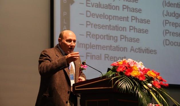 李京文院士在会议中指出:价值工程是一门显著降低成本、提高效率、提升价值的资源节约型管理技术。价值工程从技术和经济相结合的角度,以独有的多学科团队工作方式,注重功能分析和评价,通过持续创新活动优化方案,降低项产品或服务的全寿命期费用,提升各利益相关方的价值。黄海军教授代表经管学院向不远千里赴京参加此次会议的专家学者表示了热烈的欢迎。其中国际价值工程协会副主席终身CVS,Fred Kolano强调与会者应就其在价值工程领域合作与发展相关问题的研究成果进行交流与探讨;韩国价值工程协会主席,终身CVS,Young Joo Suh十分看好价值工程在韩国的发展,并肯定了价值工程对韩国富强的贡献。武春友教授虽未能来京与会,但发来函电向大会致辞,指出价值工程以创造性思维和手段,在经济萧条的时期对经济的迅速恢复起了极大的推进作用,对本次会议的意义给予了充分的肯定。会议第一阶段最后发言的是企业界的代表中铝国际工程公司副总经理蔡安辉博士,他向大家汇报了价值工程在创造资源节约型和环境友好型企业方面取得了丰硕的成果,并表示在今后价值工程的进行中,该公司会在思想方法和价值技术方面不断创新、节约成本,优化投资决策和投资方案。