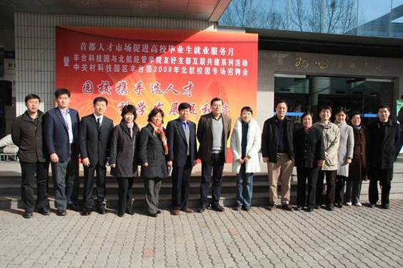 为认真贯彻落实党的十七大提出的“建立健全党的基层组织互帮互助机制”精神,北航经管学院802、803教工党支部,丰台区科技园区管理委员会党支部,经管学院学生支部在“校企联动、支部共建”活动中“早谋划、早启动、早安排”,突出抓落实,确保活动取得实实在在的成效,由北航招生就业处、经济管理学院、中关村科技园区丰台园管委会联合主办此次招聘会。中关村科技园区丰台园机关及所属企事业单位和22家园区企业参会,为北航学生提供了包括经济管理、机械工程、计算机工程等150多个应聘岗位。