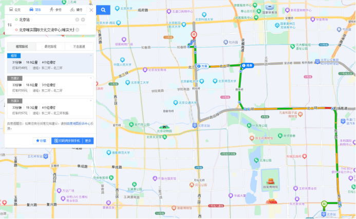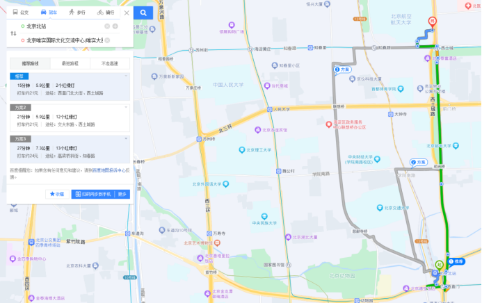 (1)地铁:地铁13号线—地铁10号线内环—西土城站。预计40分钟,费用约3元。