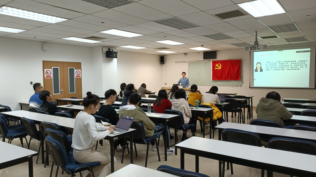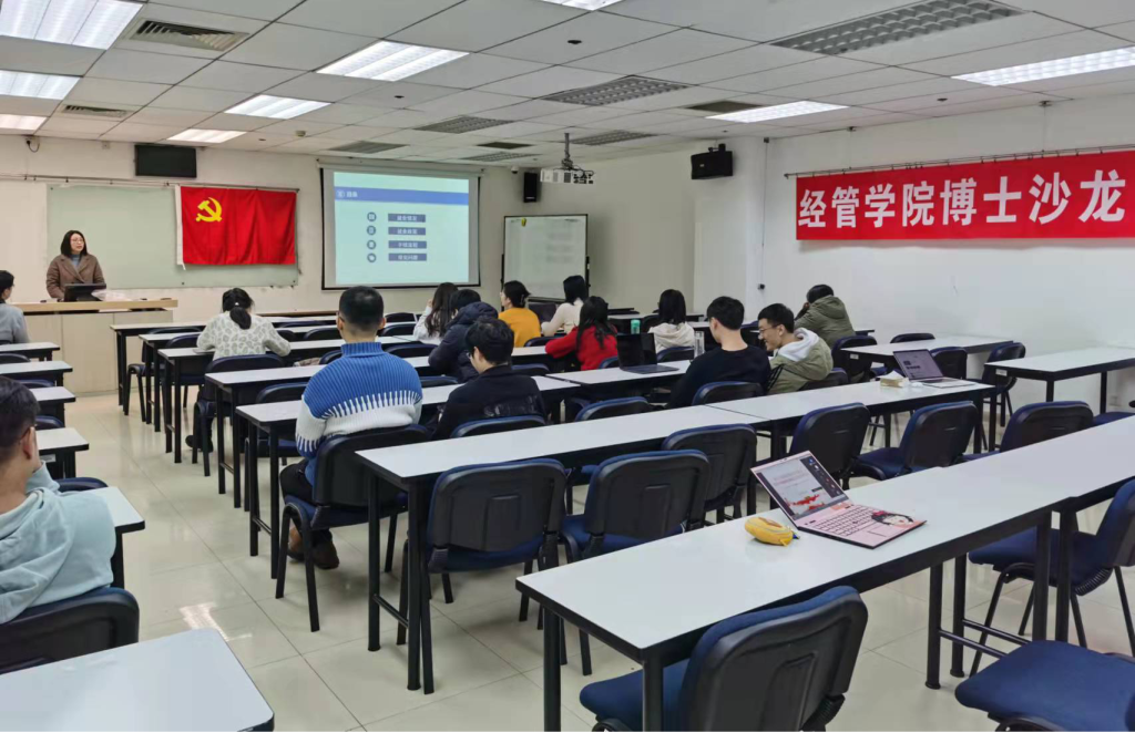 为做好博士研究生就业工作,落实好“我为师生办实事”要求,经济管理学院于2021年12月17日晚在A1148举行博士生就业主题沙龙暨博士生党支部主题党日活动。本次沙龙由BY1708党支部与BY1808党支部联合承办,邀请了职业发展中心叶枝俏老师以及上海理工大学教师王海英、广西崇左市选调生杨琛和中国银行研究院李晔林三位优秀毕业生进行讲解,近百名同学线上线下同步参与。