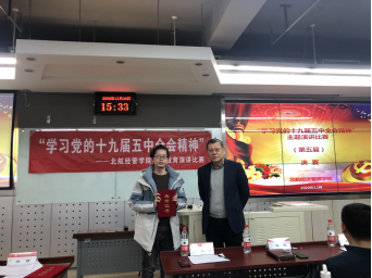 2020年12月30日下午,经济管理学院在新主楼A618举行“学习党的十九届五中全会精神”主题演讲比赛决赛。学生工作办公室主任衣萌主持本次比赛。