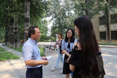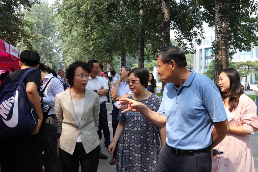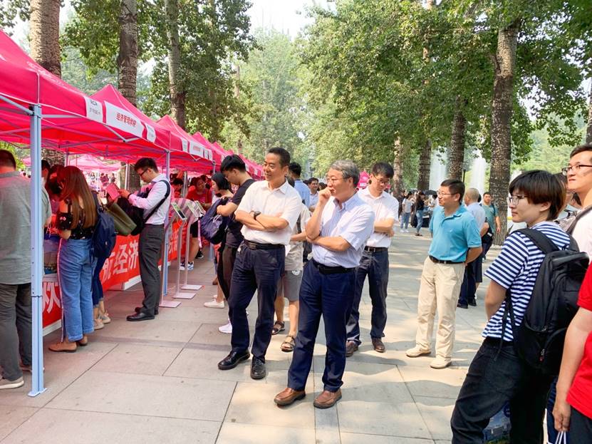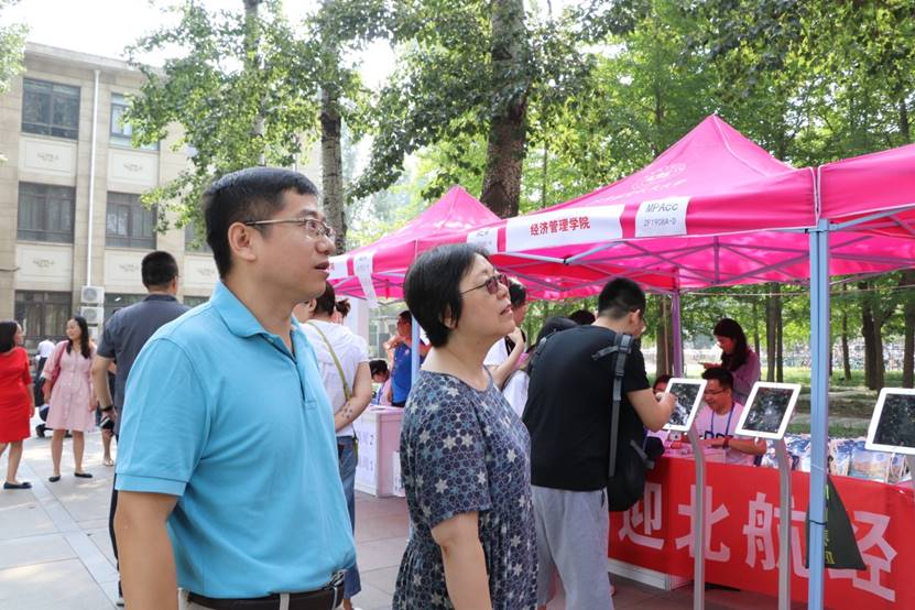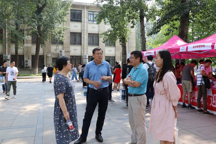 在迎新现场,校领导和院领导纷纷前来慰问。校党委书记曹淑敏、党委副书记何新洲、副校长黄海军、党委副书记赵罡等校领导先后来到求是广场指导迎新工作,与前来报到的新生及家长热情交流、合影留念。经管学院院长范英教授、党委书记刘志新教授、副院长郑海涛副教授、研究生指导主任单伟副教授、MBA中心主任李亚帅副教授、MPAcc中心主任白明副教授、MEM中心主任王玉灵副教授等也到场亲切慰问工作人员及志愿者们。