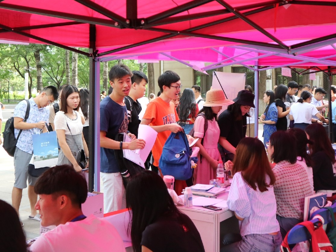 在火热的迎新现场,校领导和院领导纷纷前来慰问。校长徐惠彬、党委书记曹淑敏、副校长黄海军等校领导先后来到求是广场指导迎新工作,与前来报到的新生及家长热情交流、合影留念。经管学院院长范英教授、党委书记刘志新教授、副院长秦中峰教授、研究生指导主任单伟副教授、MBA中心主任田东文副教授、MPAcc中心主任白明副教授等也到场亲切慰问忙碌的志愿者们。