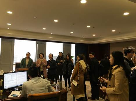 在对北航投资的办公环境参观中,同学们对北航投资公司干净整洁,风格大气的办公环境表现出了极大的兴趣。 在与人力总监探讨了一些与公司职能相关的问题后,大家纷纷递交了自己的简历,希望得到一次实习的机会。