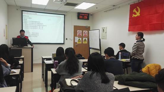 2017年12月28日,北航经济管理学院1408第一党支部邀请北航研究生宣讲团的学长为支部同学进行了关于学习十九大精神的宣讲。17级能源与动力学院研究生支部的支部书记王子贤同志宣讲的主题为《学十九大报告,做新时代标兵》。