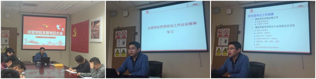 在会议的后半程单伟老师还对党支部书记工作进行了部署。针对党员发展的后期工作、预备党员转正流程、微党课收尾工作、完成本年度“两学一做”学习计划、支部手册、年底支部总结及党费工作一一作了部署。