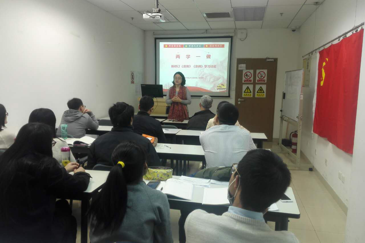 党支部书记唐鹏飞、组织委员许明明、宣传委员时倩分别围绕《关于新形势下党内政治生活的若干准则》和《中国共产党党内监督条例》以及两个文件制定的背景与意义进行了讲解,与大家分享了自己的学习体会。支部党员认真记录,进行了热烈讨论。会上,党支书还对接下来一段时间支部“两学一做”学习教育进行了安排。