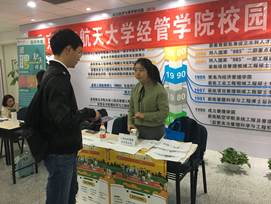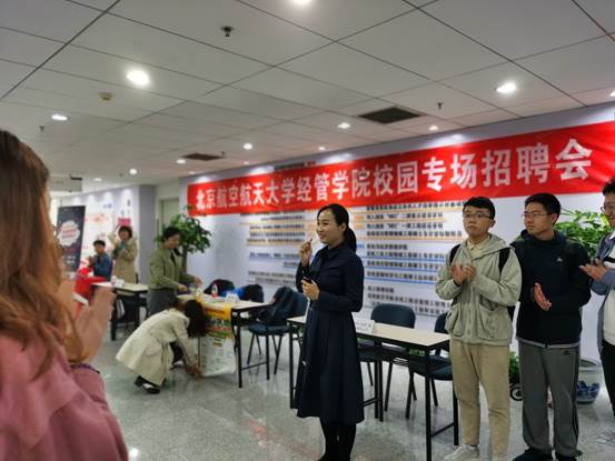 2019年10月19日上午9:30——11:30,由“启梦”工作坊和经管学院职业发展中心联合举办的北航经济管理学院2019年秋季校园招聘会在新主楼A座6层大厅顺利开幕。研究生工作办公室主任衣萌老师代表经济管理学院发表开场致辞。衣老师表示北京亚洲成人在线一二三四五六区经济管理学院校园专场招聘会是学院的一项传统活动,旨在帮助学生与企业对接,实现理想就业;并表示热烈欢迎各企业莅临我院参加本次招聘会。