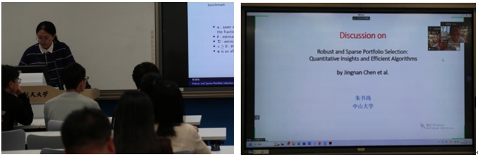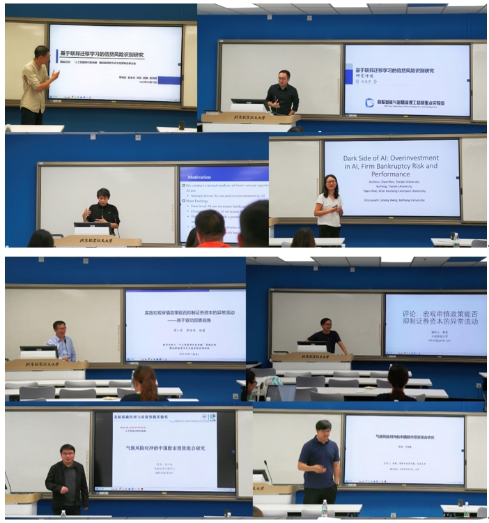 融实论坛之专题论坛的下午场为学术交流环节,邀请了北航经管金融系的陈靖楠副教授、天津大学张永杰教授、天津大学冯绪教授、北航经管金融系的谭小芬教授、北航经管应用经济系的刘炳越副教授分别围绕量化交易、信用风险、金融安全主题做学术报告。并且专门邀请了中山大学朱书尚教授、北航经管信息系统系的刘冠男副教授、北航经管金融系的洪洁瑛副教授、中央财经大学李杰副教授、天津大学林兟副教授作为评论人对研究工作进行了点评和交流。下午场学术论坛分别有北航经管金融系的吴蕾副教授、李平教授、石丽娜博士、李伟博士、莫璇博士主持。