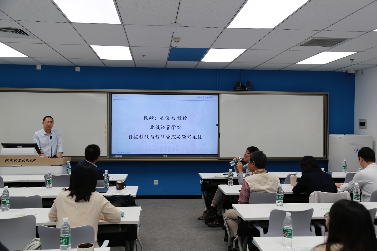开幕式由北航经管学院学院金融系主任部慧副教授主持,北航经管学院党委书记郑海涛教授、数据智能与智慧管理工业和信息化部重点实验室主任吴俊杰教授出席开幕式并致辞。本次论坛共设置3场主旨报告,2场实验室专题报告和5场学术专题报告。本次专题论坛特邀清华大学社会科学学院经济所所长汤珂教授作题为“Teaching Economics to Machines”的主旨报告;特邀天津大学管理与经济学部副主任熊熊教授作了关于“中国金融系统特征分析”的主旨报告;特邀北京亚洲成人在线一二三四五六区金融系杨海军教授作主题为“Frequent Batch Auctions vs Continuous Time Auctions under Order Cancellation and Maker-taker Fee”的主旨报告;三场主旨报告分别由北航经管吴俊杰教授、谭小芬教授和金昊副教授主持。