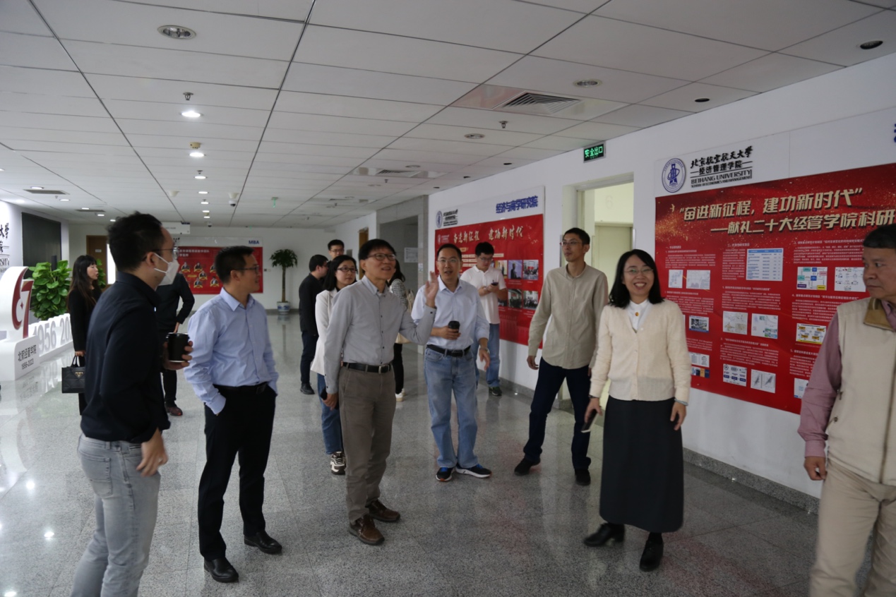 随后,吴俊杰教授和部慧副教授陪同张维教授带队的天大团队和参会嘉宾们参观了学院的经管广场和历史回顾展,并合影留念。