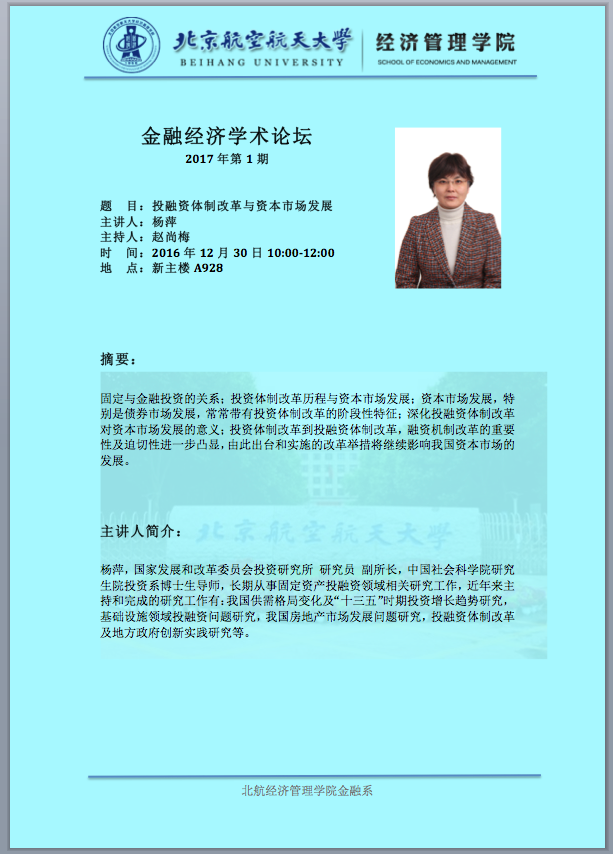 【金融与经济学术论坛】投融资体制改革与资本市场发展