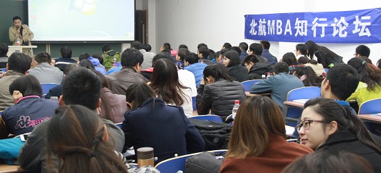金秋时节的北航校园,梧桐尽染,银杏金黄, MBA知行论坛于2015年10月31日晚在新主楼B101教室如约开讲。本次论坛邀请的嘉宾是国内重点新闻网站新华网房地产事业中心总经理侯敏先生。侯总在房地产媒体领域锤炼多年,此次到访北航,他以媒体人视角看“互联网+”发展,为广大MBA同学做了精彩分享。