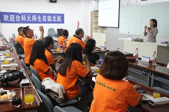 欢迎仪式结束后,台科大师生共同参观了我院实验中心,对先进的教学设备和优质的办学条件表示赞赏。接着,两院师生共同走进北航校园,伴着夏日午后的徐徐凉风,游览古朴儒雅的老教学区,感受北航建校六十余载的文化底蕴。