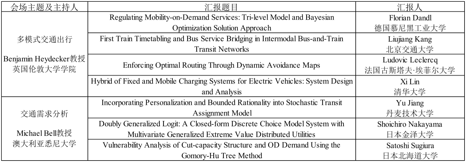 7月24日下午,大会延续上午的热烈氛围,就多模式交通出行与交通需求分析两个专题进行汇报,英国伦敦大学学院Benjamin Heydecker教授和澳大利亚悉尼大学Michael Bell教授分别担任主持人。