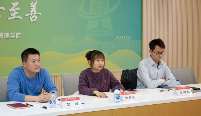 随后,学生党支部书记围绕学习贯彻习近平新时代中国特色社会主义思想和党的二十大精神,落实基层党建重点任务,加强支部班子和制度建设,“学习日”“三会一课”等组织生活开展情况以及支部工作取得的成效、存在的问题、加强和改进工作的思路措施等,依次进行年度工作述职汇报。其中,本科2008(一)党支部书记王卓雅分享了支部全面贯彻学习党的二十大精神、把握主题教育目标要求的具体学习情况;博士BY2008党支部书记郑舒文分享了支书讲党课的心得体会,以及通过将理论、实践、案例有机融合实现科研和党建深度融合的经验;会计纵向学生党支部书记高美琪分享了通过开展六次“联学共建”活动提升支部凝聚力、通过成立红歌宣讲团传播经管声音、激发奋进力量的支部特色;硕士SY2208(二)党支部书记钟锐分享了“理论体系构建、施政逻辑探源、重点知识记忆”的三步走讲党课思路;本科2108党支部书记尹滢滢分享了“共读2本书、同览1处景、共建0障碍、智闯8个关”的创意党建活动等。