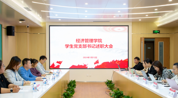 为进一步夯实学生党支部标准化建设,全面了解学生党支部的工作情况,推动学院党建工作向纵深发展,2024年1月12日下午,经济管理学院开展学生党支部书记述职大会。学院党委副书记高超、学生工作部专职辅导员史荻薇、学院专职辅导员陶雨芊、朱帅东、学院党建辅导员张慧美及学生党支部书记出席会议。