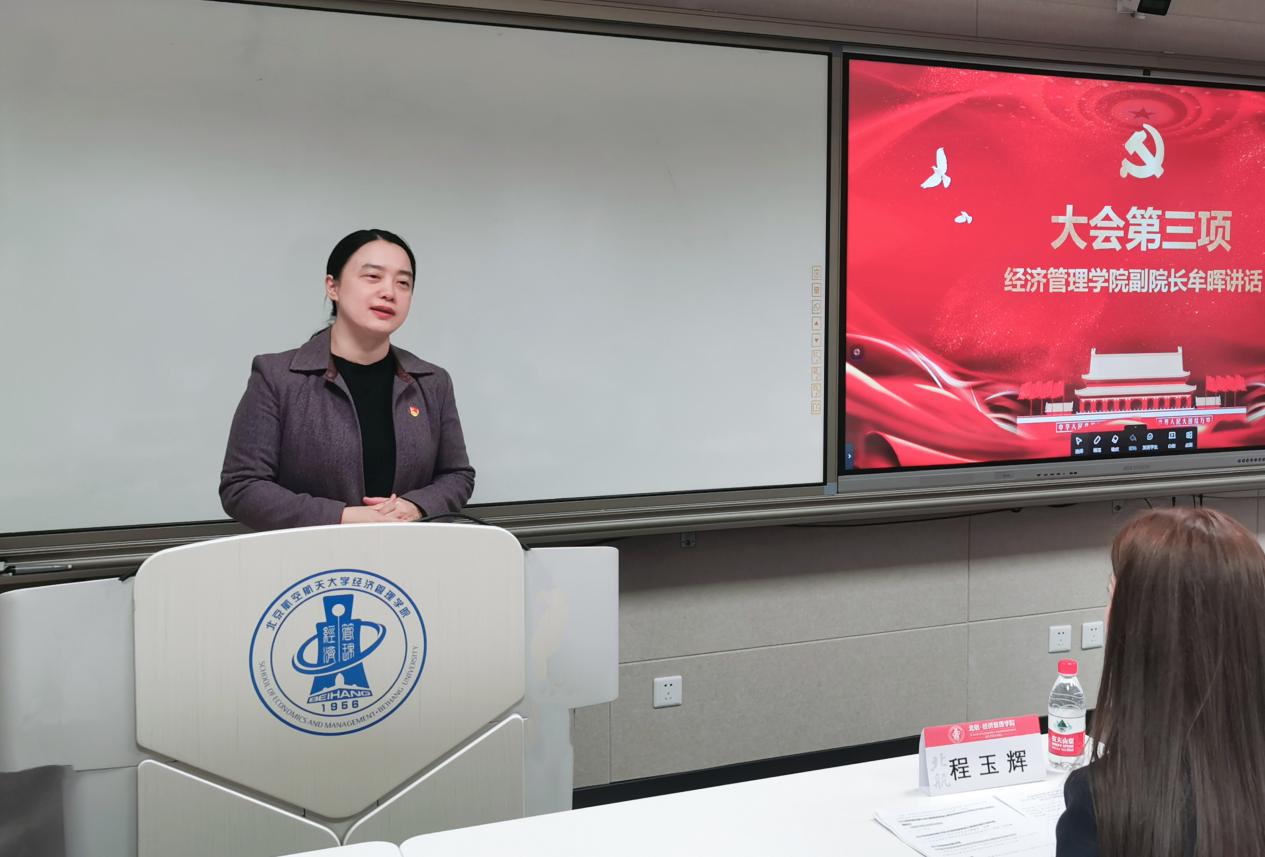 2024年10月27日,北京亚洲成人在线一二三四五六区经济管理学院2024级MEM非全日制研究生临时党支部成立大会暨首场党课顺利举行。经济管理学院副院长牟晖、MEM教育中心主任闪四清、MEM教育中心老师以及2024级MEM学生党员、班委参加本次大会。此次大会由经济管理学院MEM教育中心副主任程玉辉主持。