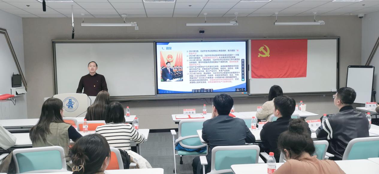 成立大会结束后,经济管理学院MEM教育中心主任闪四清作了题为《新质生产力》的首场党课,介绍了新质生产力的背景、概念及主要特征,并结合当前我国数字化产业发展现状进行了深入分析。