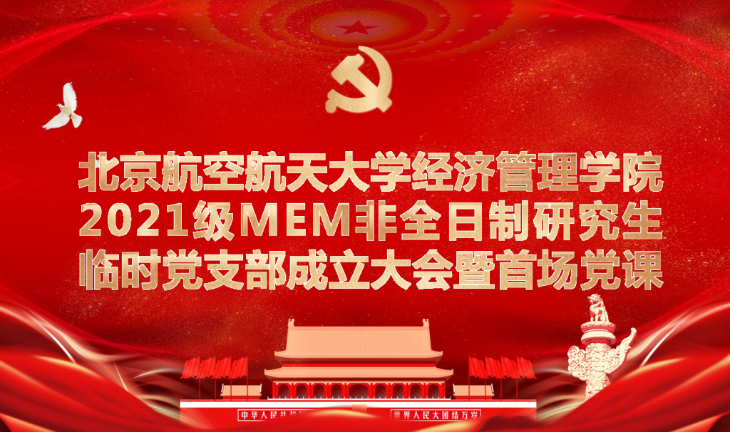 2021年11月25日,北航经济管理学院举行2021级MEM非全日制研究生临时党支部成立大会暨首场党课。党委研究生工作部部长宋晓东、经济管理学院副院长郑海涛、经济管理学院MEM教育中心副主任王玉灵、MEM教育中心老师以及2021级60名MEM学生党员参加会议,此次大会由经济管理学院MEM教育中心主任闪四清主持。