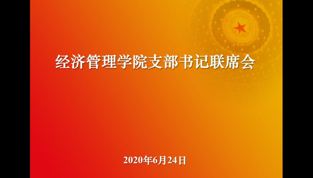 2020年6月24日下午4时30分,经济管理学院召开支部书记联席会,传达学校专题工作部署会暨分党委书记联席会精神,学院分党委书记刘志新主持会议,全体师生党支部书记、学生工作负责人和专职组织员40余人参加会议。